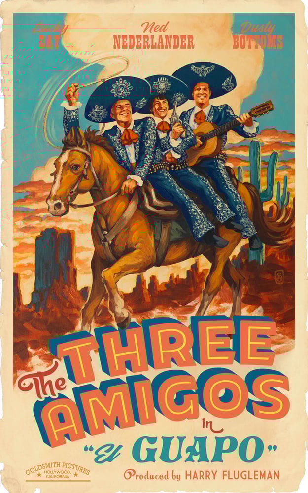 The cult classic comedy and movie posters of the Silent Film era inspired this 11"x17" giclee, printed in vibrant colors on matte paper.